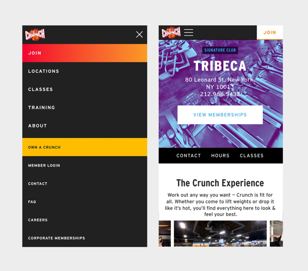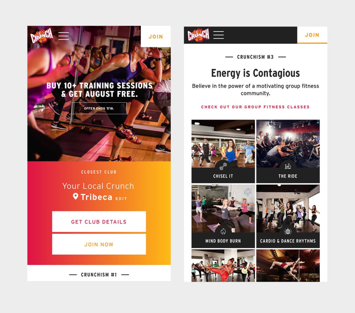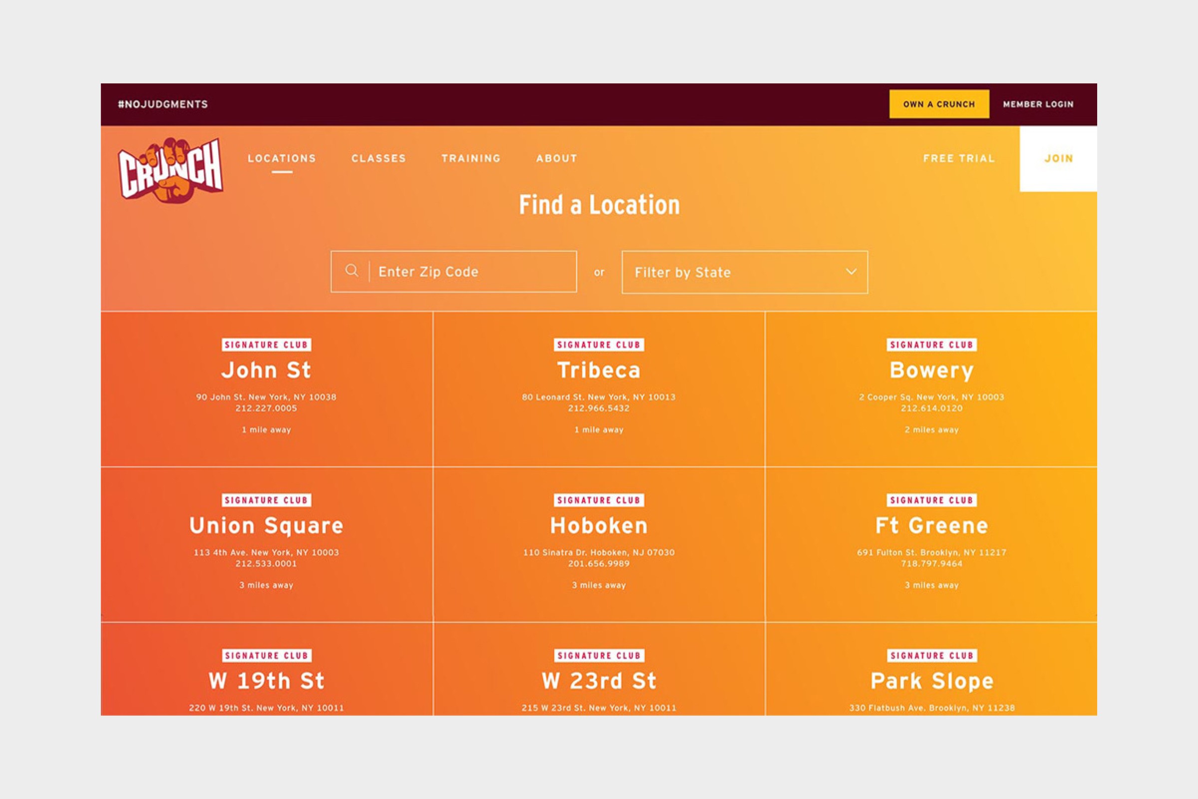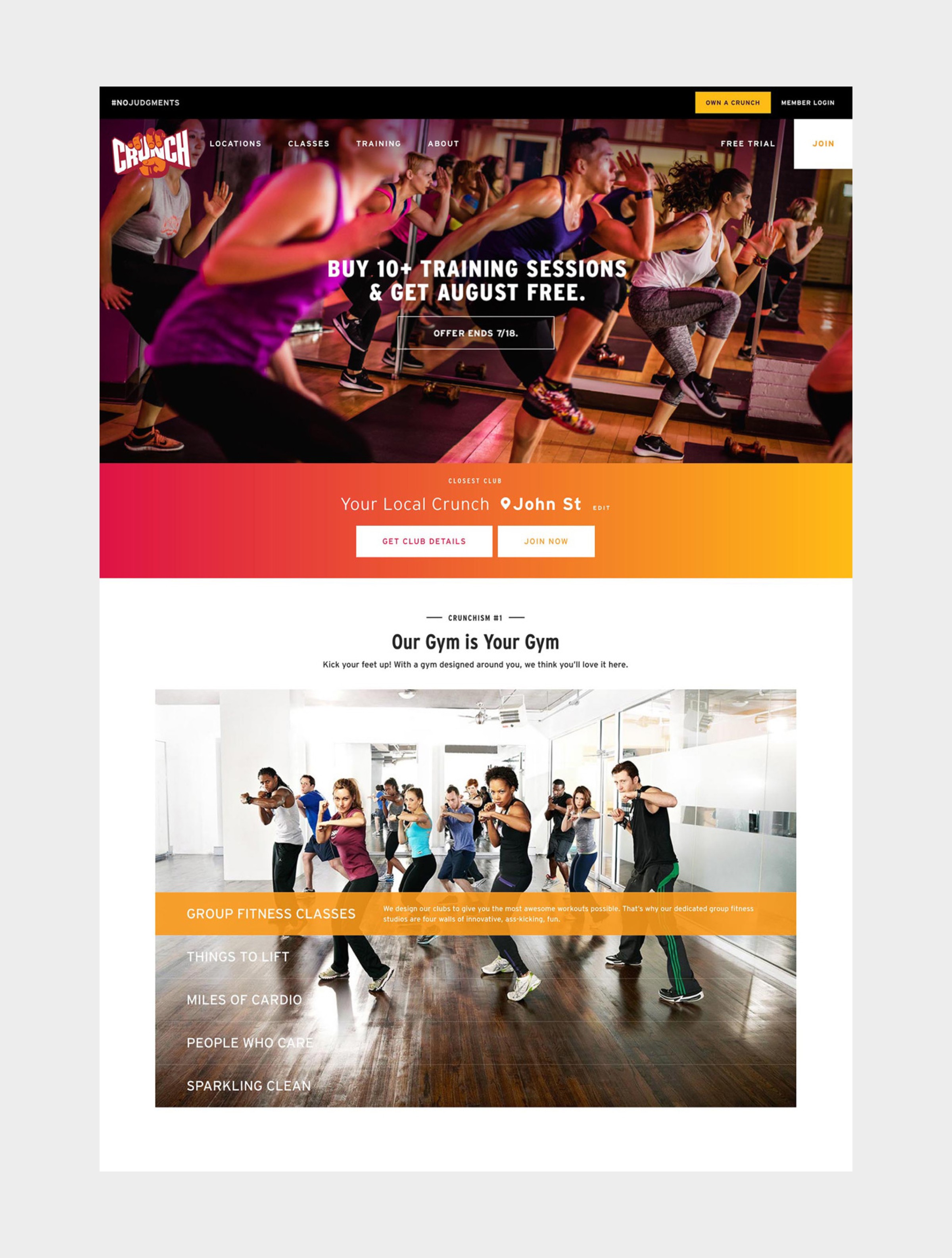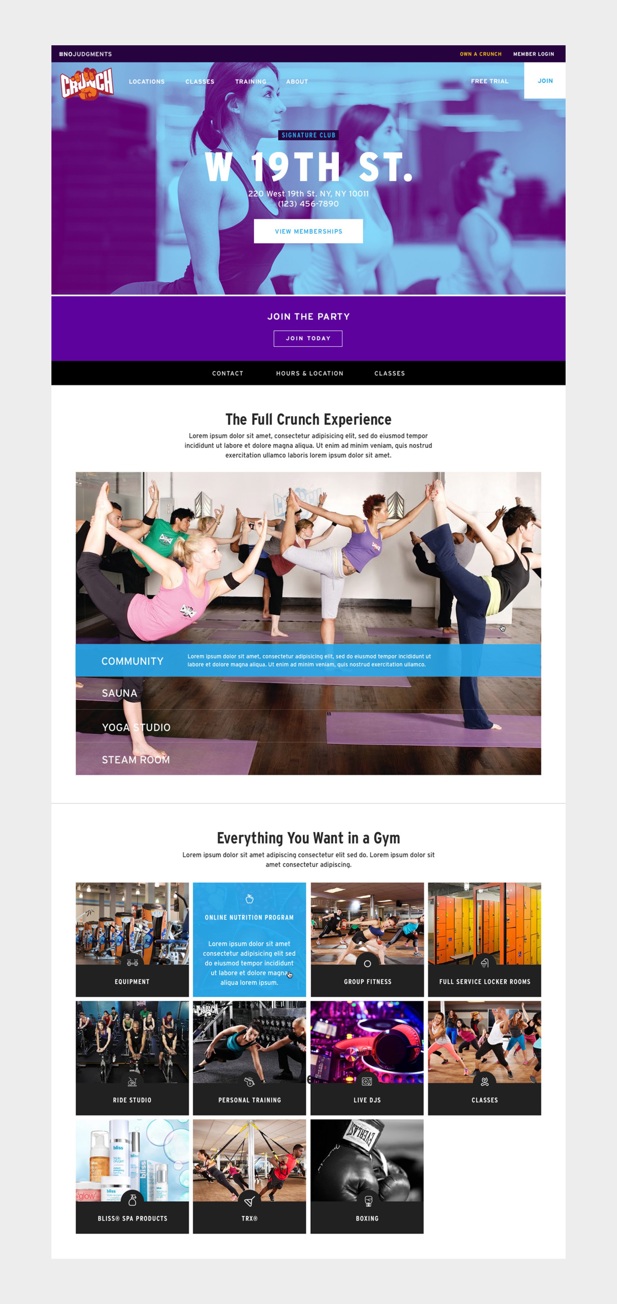 The goal was to create a fun, bold, and vibrant experience that was better suited for Crunch’s “No Judgments” philosophy.