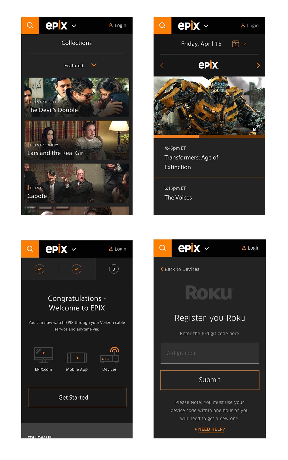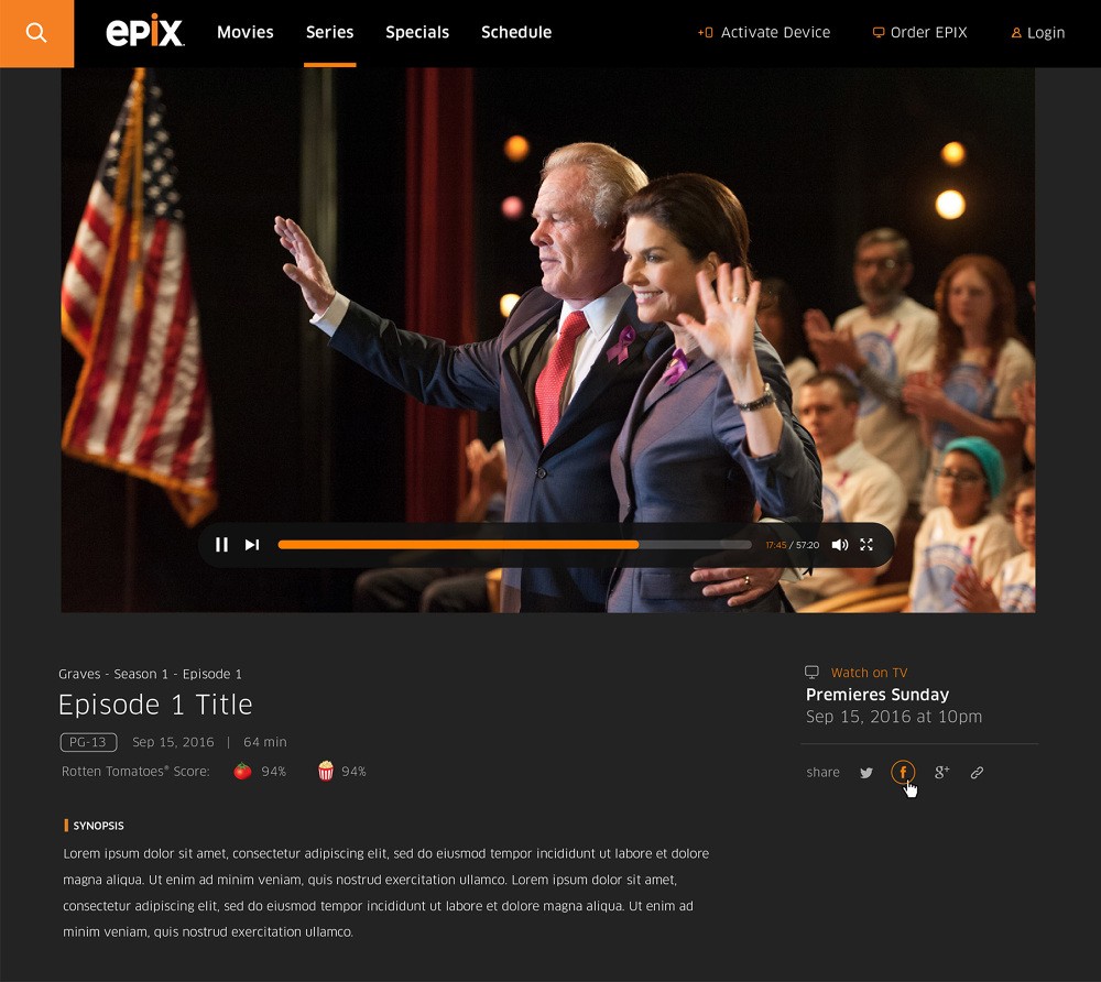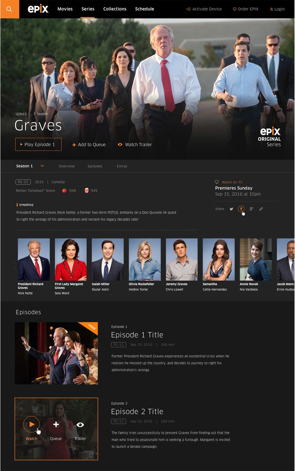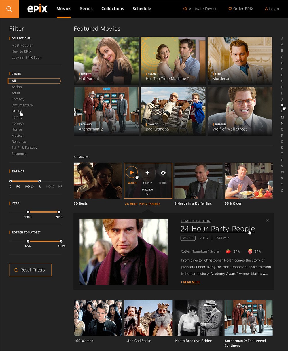 Streaming video is at the center of the internet, and there is certainly a lot of competition. As a premium cable television network, EPIX was in need of a digital platform in which their subscribers could login and consume content, but that also differentiated itself from HBO and Netflix and highlighted their recent endeavor of original programming. Leading the design for Canvas United, I was tasked with bringing this platform to the web.