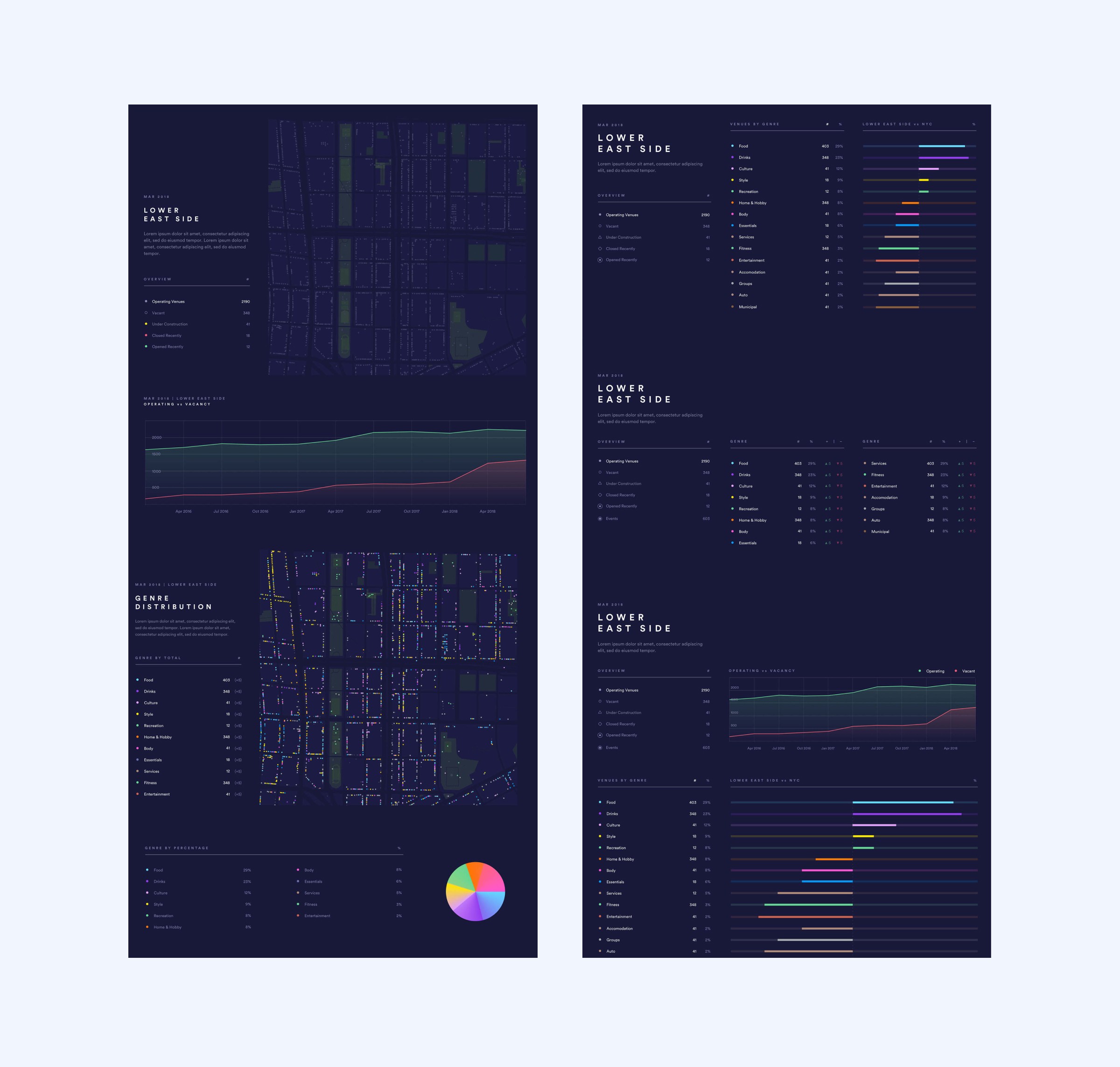 This mapping experience was the first step to a larger brand overhaul. Live XYZ used to have a consumer app that allowed users to search its database for places and events. The founders wanted this new mapping tool to look much different from the existing tools. Upon completion of the mapping tool I also helped them with some future concepts which involved reporting tools, dashboards for their clients, and digital street advertisements in partnership with NYC Small Business Services. These additional projects eventually paused to hopefully be picked up in the future.